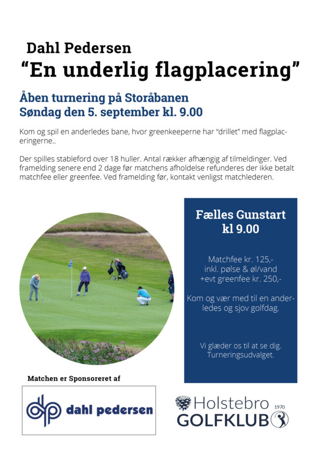 Der var 60 tilmeldte spillere til start i det mest fantastiske sommervejr – perfekt til golf. Efter turneringen var afviklet fik alle en dejlig grill pølse fra Slagter Lange. Da alle var spist af, var der præmieoverrækkelse. Tak til Dahl Pedersen A/S for match sponsoratet. A – rækken Peter Holmkvist Kristensen 37 Jytte Engholm 18.9 …
